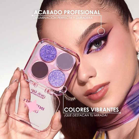 Descubre el poder del color con Intensity Glam, una paleta con cuatro sombras de ojos de alta pigmentación y textura suave. Diseñada para ofrecer un acabado profesional, combina tonos mate intensos con sombras metálicas de alto brillo, gracias a su fórmula enriquecida con pigmentos minerales concentrados que garantizan color vibrante y luminosidad excepcional desde la primera aplicación.
