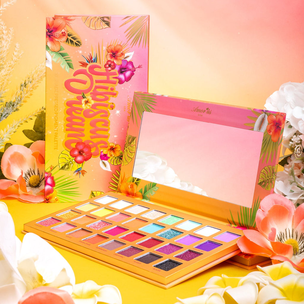 La paleta Hibiscus Dream  consta de 32 pigmentos prensados  diseñados para conseguir el look veraniego de tus sueños. Lleno de rayos de sol y pigmento agradable para construir en todos los tonos, prepárate para enloquecer por esos looks creativos tuyos.