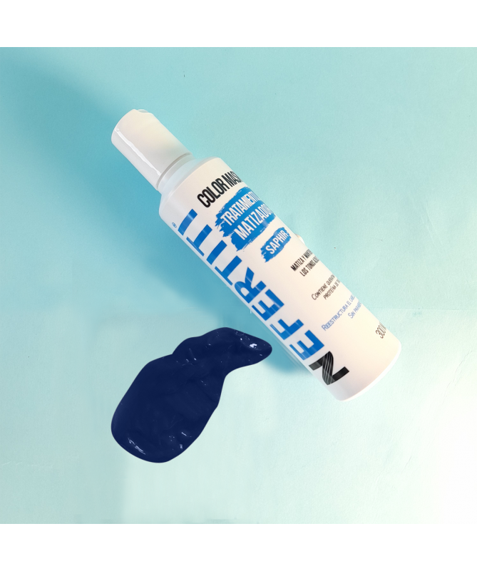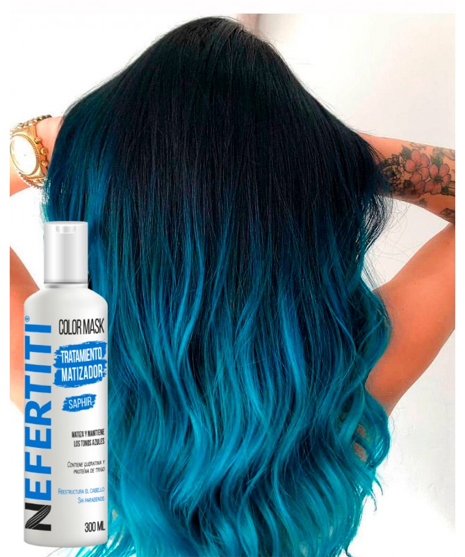 Color Mask Saphir de Nefertiti matiza y mantiene los tonos azules del cabello. Contiene Queratina y Proteína de Trigo que reestructuran el cabello.