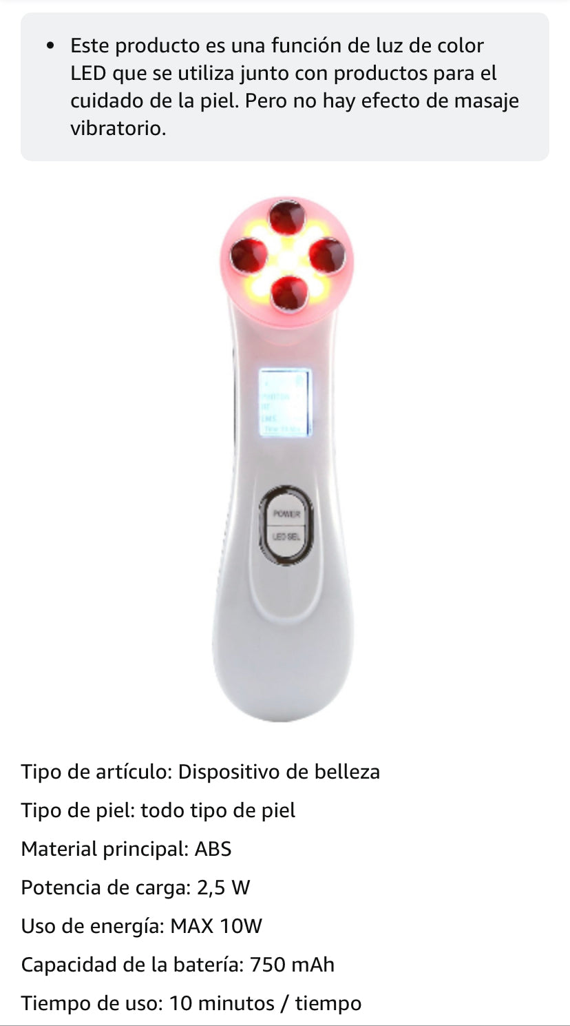 • ♡ FUNCIÓN DE 6 MODOS DE LUZ DE COLOR LED: Luz roja, bolsas de ojos lisas y buenas para el cuidado de la piel de los ojos; Luz verde, restringe la producción excesiva de melanina y hace que la piel sea más blanca; Blue Light, antiinflamatorio, calma los poros retráctiles, aplica sobre el acné o la piel grasa; Luz amarilla, piel brillante; Pink Light, blanqueando la piel, adecuada para pieles más oscuras; Luz de destello rosa, fortalece la infiltración de fluidos o geles de peluquería.