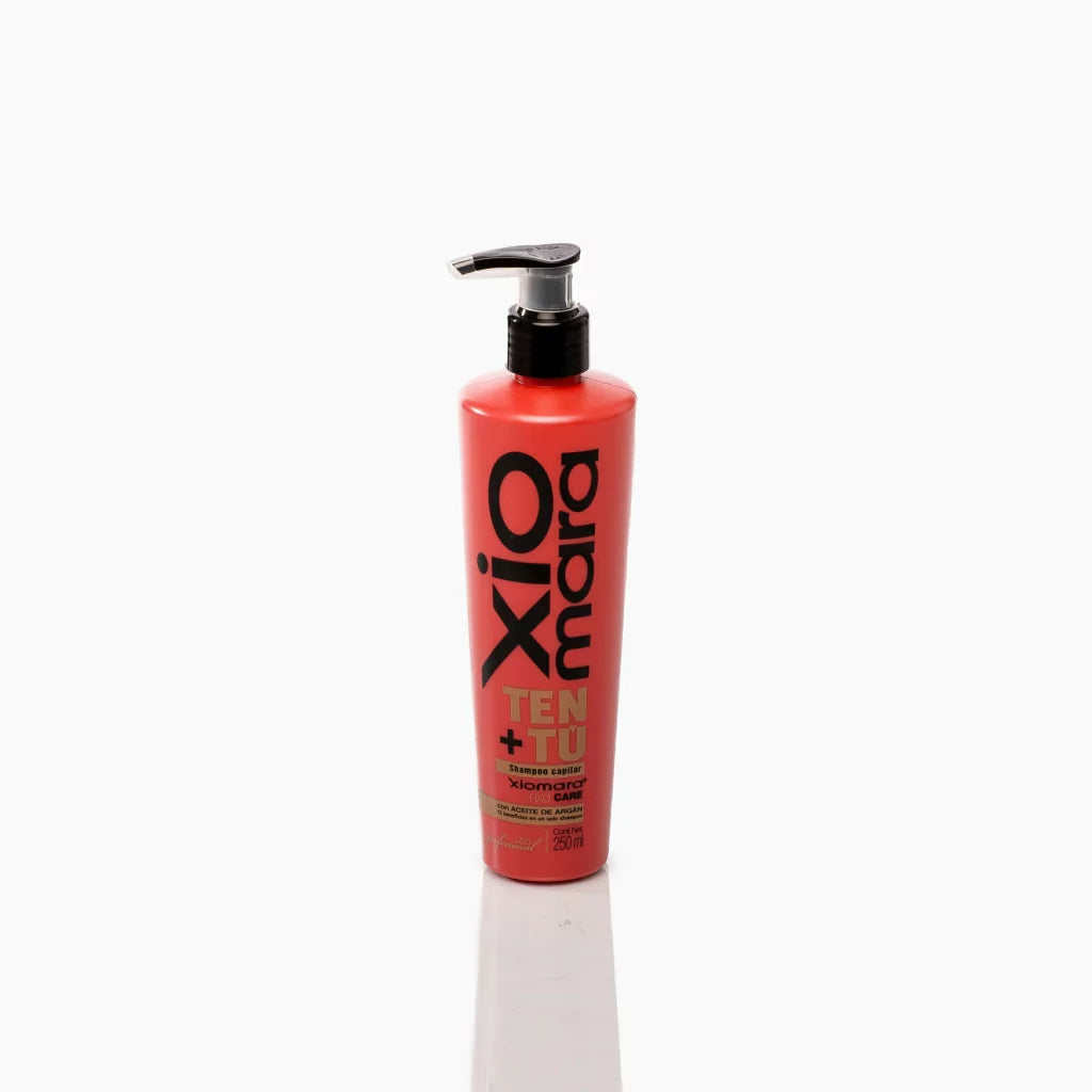 • El Shampoo Xiomara Ten más Tú con aceite de argán, aporta 12 grandes beneficios a tu cabello para lucir espectacular: 1. Limpia de manera efectiva el cabello 2. Contiene agentes que no agreden la piel cabelluda. 3. Genera suave y agradable espuma. 4. Aporta brillo 5. Brinda acondicionamiento. 6. Elimina residuos acumulados. 7. Deja el cabello suave. 8. Desenreda en húmedo y en seco. 9. Aporta volumen. 10. Ayuda a prevenir puntas abiertas 11. Contiene aceite de argán que es altamente hidratante. 12. Contiene D-pantenol (Pro Vitamina B5)